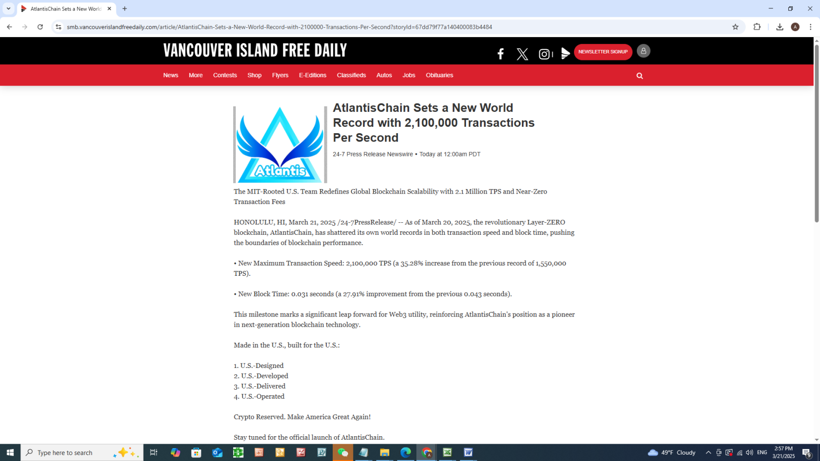 As of March 20, 2025, the revolutionary Layer-ZERO blockchain, AtlantisChain, has shattered its own world records in both transaction speed and block time, pushing the boundaries of blockchain performance.